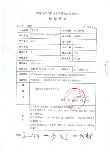 安全閥檢驗報告