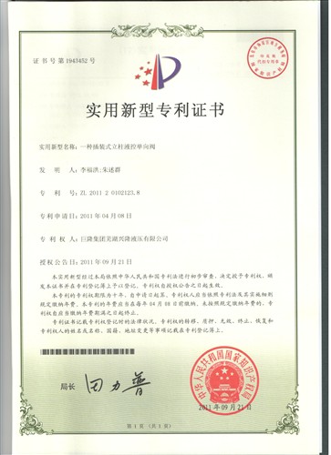 專利:一種插裝式立柱液控單向閥