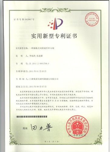 專利:一種插裝式雙聯液控單向閥